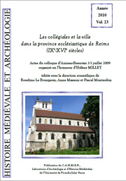 Roselyne Le Bourgeois, Anne Massoni et Pascal Montaubin, dir., Les collégiales et la ville dans la province ecclésiastique de Reims (IXe-XVIe siècles). Actes du colloque d’Amiens-Beauvais (3,4 et 5 juillet 2009) organisé en l’honneur d’Hélène Millet, Amiens, C.A.H.M.E.R., 2010, 230 p. (Histoire médiévale et archéologie).