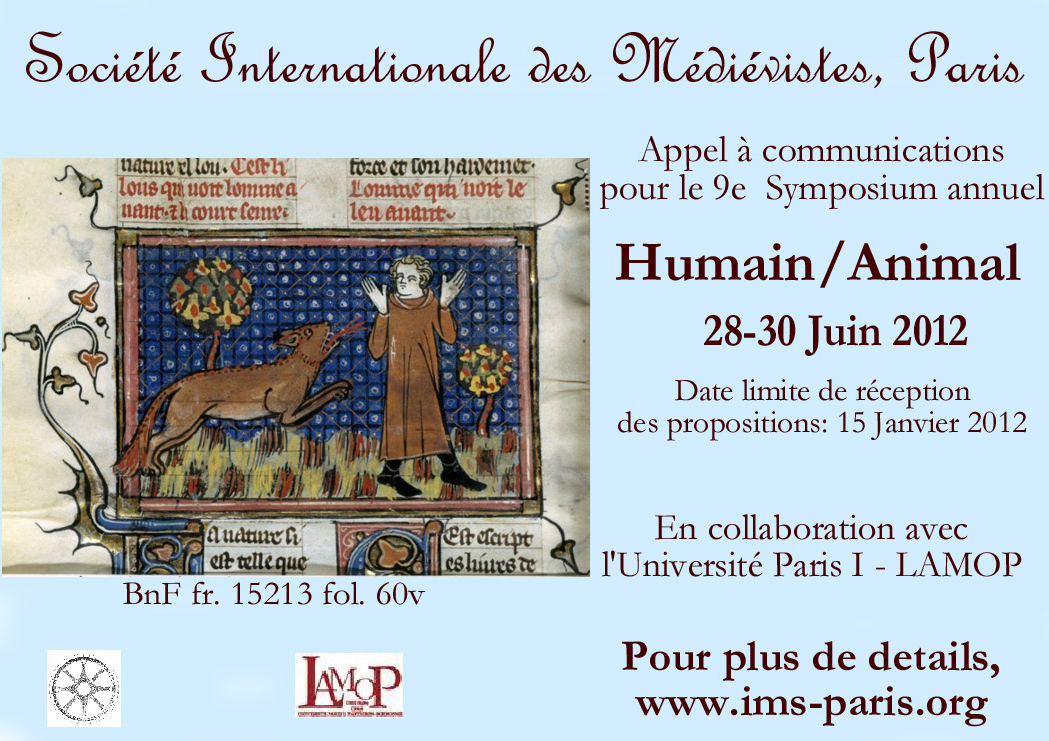 Les animaux, tant réels que fantastiques, occupent une place importante dans la culture, la pensée et la production artistique du Moyen Age. Ce symposium s’intéresse à un aspect particulier de leur rôle : leur relation avec les hommes et la façon dont cette relation fut imaginée, définie et redéfinie au cours de l’histoire et dans la culture médiévale. La distinction entre l’humain et l’animal a pu évoluer d’un point de vue historique comme dans les mentalités. Certains historiens ont avancé que la notion même d’animal et l’idée qu’ils ont une forme de vie différente de celle des êtres humains ont été mises à mal au cours du XIIe siècle. Ce phénomène se constate dans la terminologie utilisée pour désigner les animaux, dans la représentation animale dans les arts et la littérature, ainsi que dans l’évolution de textes fondamentaux comme le Physiologus ou ses dérivés que sont les bestiaires. Dans ce contexte, les frontières entre le monde humain et animal, qui peuvent être fondées sur des faits tels que la maîtrise du langage, la capacité à rire ou la responsabilité légale, ont pu évoluer et être remises en cause. Ce colloque discutera des questions soulevées par cette relation mouvante entre humains et animaux au Moyen Age d’un point de vue historique et dans une perspective pluridisciplinaire, en s’intéressant plus particulièrement à certains points :