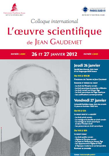 Vendredi 27 janvier 2012 (9h-18h): Paris, Université Panthéon-Assas, Salle des conseils, 12, place du Panthéon, 75005 Paris (RER, Station Luxembourg).