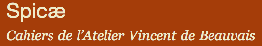 De 1979 à 1986, la revue Spicae. Cahiers de l’Atelier Vincent de Beauvais a été publiée sous forme papier. Ces anciens numéros sont maintenant disponibles en versions téléchargeables sur le site web de l’équipe.