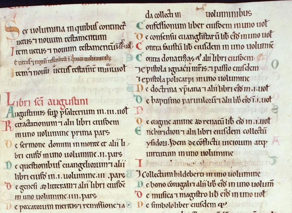 - Domaines et formes des textes transmis : littérature séculière (classiques, histoire, droit, fiction, médecine) ou religieuse (Pères de l’Eglise, liturgie) ; prose ou poésie.