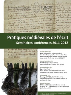 Créé en 2011, le Centre de recherche « Pratiques médiévales de l’écrit » réunit les médiévistes des FUNDP (enseignants, chercheurs, doctorants et post-doctorants) qui s’intéressent à la problématique multiforme de l’écrit au Moyen Âge, ainsi qu’une vingtaine de membres associés belges et étrangers. Son objectif principal est de promouvoir les collaborations à tous niveaux dans ce secteur de la médiévistique occidentale actuellement en plein essor, grâce à des initiatives de coordination et de décloisonnement de la recherche, qui passent notamment par l’organisation de colloques, de conférences et d’ateliers de recherche interdisciplinaires.