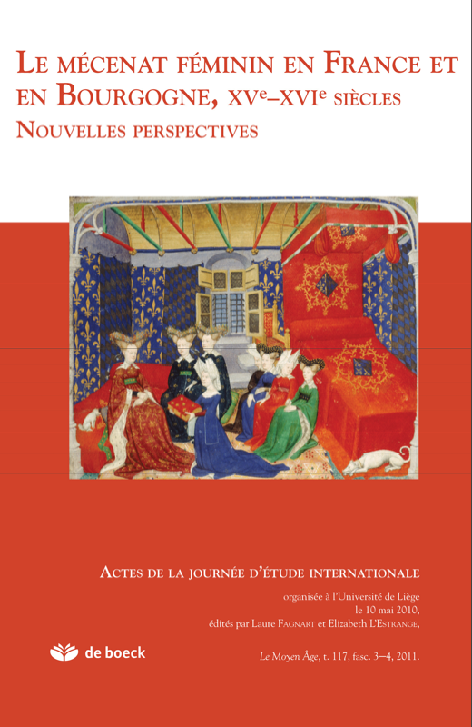 Le mécénat féminin en France et en Bourgogne, XIVe-XVIe siècles. Nouvelles perspectives. Journée d’études tenue à l’Université de Liège le 10 mai 2010, dans Le Moyen Age. Revue d’histoire et de philologie, n° 117, 2011.