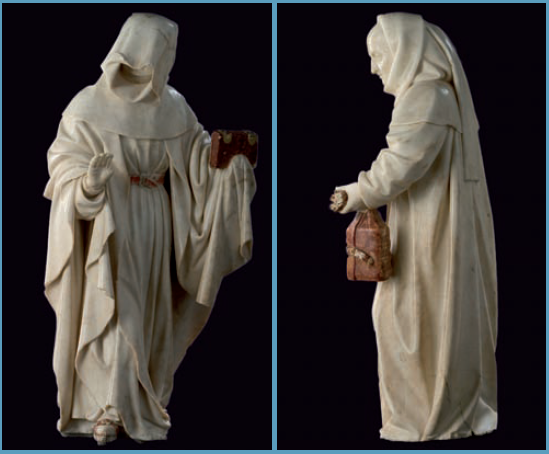 À la fin du Moyen Âge, les ducs de Bourgogne étaient les princes les plus riches et les plus puissants du nord de l’Europe, contrôlant un vaste territoire qui incluait la Belgique et les Pays-Bas actuels et une grande partie due nordest de la France. C’est pour embellir et célébrer leur splendide cour à Dijon que les ducs sollicitèrent des sculpteurs de haute renommée. OEuvrant au sein d’un atelier dirigé par Jean de Marville puis par Claus Sluter et Claus de Werve, ces artistes créèrent pour la famille ducale des monuments somptueux.
