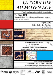 Le Centre de Médiévistique Jean Schneider (ERL 7229), le Centre de Recherches Universitaire Lorrain d’Histoire, Metz (EA 3945) et les médiévistes d’IDEA organisent la seconde édition du colloque international et interdisciplinaire consacré à la Formule au Moyen-Âge.