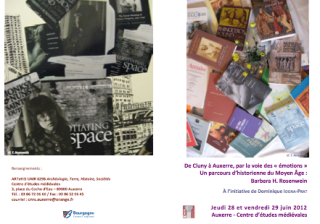 L’invitée est cette fois Barbara H. Rosenwein, bien connue des historiens du Moyen Âge, et spécialement des historiens travaillant sur la Bourgogne. Le parcours proposé partira de Cluny (objet des ses premiers travaux) pour aboutir à Auxerre (le lieu de la rencontre), en passant par la voie des « émotions », objet des recherches de Barbara depuis une bonne dizaine d’années
