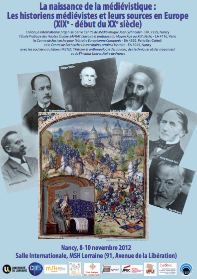 Ce colloque se propose d’aborder la question des sources médiévales, au moment où elles furent assemblées en un corpus, conçu d’emblée comme polymorphe (publication et édition critique des textes médiévaux, tri, classement, ouverture des archives aux chercheurs et au public, inventaire des œuvres d’art…). Les communications attendues traiteront des motivations et des méthodes qui présidèrent à l’élaboration du corpus, mais aussi des grandes figures, nationales ou locales, qui en furent les acteurs. Trois interrogations retiendront particulièrement l’attention : quel impact eurent ces entreprises de publication de textes et d’inventaire sur le travail et le discours de l’historien ? Comment envisagea-t-on la conservation, la médiatisation auprès du public de ce corpus médiéval, conçu aussi comme un patrimoine, (bâtiments destinés à la conservation, expositions, rôle de la photographie) ? Quel fut le rôle joué par les contacts – ou la concurrence – entre érudits et historiens des différents pays ?