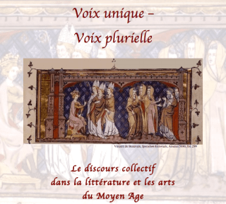 C’est cette parole collective, littéraire, picturale, sculpturale ou musicale, lourde d’une multiplicité de voix, mais souvent réduite à un contenu unique, que nous nous proposons d’étudier pour le prochain colloque du CUER MA/ CIELAM.