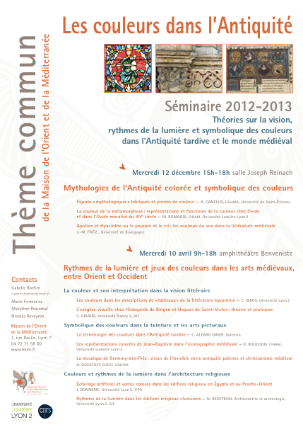 Théories sur la vision, rythmes de la lumière et symbolique des couleurs dans l’Antiquité tardive et le monde médiéval. Thème Commun de la Maison de l’Orient et de la Méditerranée « Les couleurs dans l’Antiquité » Cycle 2012-2013