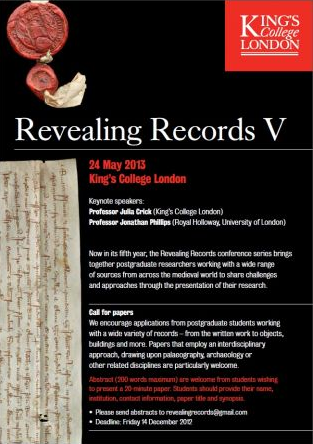 Now in its fifth year, the Revealing Records conference series brings together postgraduate researchers working with a wide range of sources from across the medieval world to share challenges and approaches through the presentation of their research.