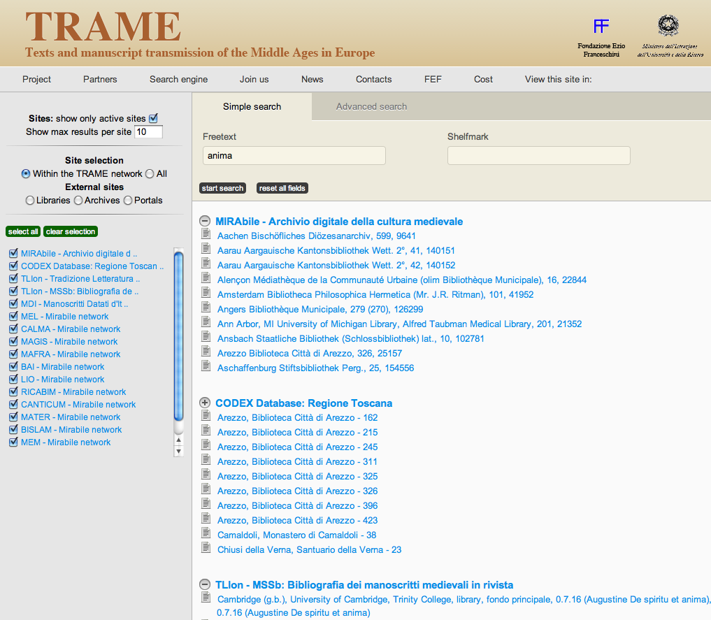 - step 3: extend the metasearch approach to virtually any relevant web resource devoted to medieval texts and manuscripts, through an extended partnership program