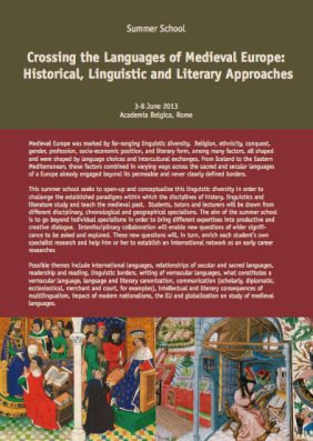 This summer school seeks to open-up and conceptualize this linguistic diversity in order to challenge the established paradigms within which the disciplines of history, linguistics and literature study and teach the medieval past. Students, tutors and lecturers will be drawn from different disciplinary, chronological and geographical specialisms. The aim of the summer school is to go beyond individual specialisms in order to bring different expertises into productive and creative dialogue. Interdisciplinary collaboration will enable new questions of wider significance to be asked and explored. These new questions will, in turn, enrich each student’s own specialist research and help him or her to establish an international network as an early career researcher.