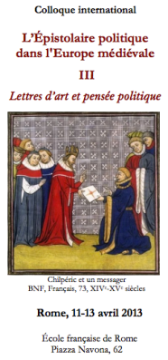 Après deux rencontres consacrées à Gouverner par les lettres (2010) et Authentiques et autographes (2012), le programme Épistolaire politique propose un colloque sur le genre, les formes et les fonctions politiques des Lettres d’art. Ce projet est le fruit d’une collaboration avec l’École Française de Rome et le Centro Europeo di Ricerche Medievali de Trieste qui conduisent, depuis 2008, un programme sur Les correspondances politiques et diplomatiques de l’Italie Médiévale. Définir ce qu’est, ou n’est pas, une « lettre d’art » constitue en soi un exercice délicat. L’une des premières questions est bien sûr de savoir si le texte a participé d’un véritable échange épistolaire ou s’il ne constitue qu’une missive fictive ou une épître récrite en vue d’une large publication. De fait, beaucoup de pièces visent un public étendu, et non le seul destinataire désigné. Goûtée depuis l’Antiquité, la lettre d’art prend des formes extrêmement variées. Ses éléments, graphiques, linguistiques ou textuels s’inspirent cependant de modèles antérieurs. Il s’agit dès lors de déterminer le sens de cette pratique de l’imitation et de la variation : le modèle constitue-t-il un simple réservoir de formules ou s’agit-il d’appuyer la pensée sur l’auctoritas des Anciens ? En effet, la forme épistolaire, même de la plus haute qualité, entretient l’illusion d’une familiarité. Un dialogue inter absentes permet ainsi de traiter aussi bien des problèmes immédiats que des questions politiques ou philosophiques. La lettre d’art, plus que la lettre-missive ordinaire, a d’ailleurs vocation à être conservée, à part ou au sein de chroniques. Des collections peuvent être aussi rassemblées par les épistoliers eux-mêmes ainsi que par le personnel des chancelleries. De la lettre d’art à l’art lui-même, il n’y a qu’un pas. Les belles missives sont parfois copiées dans des manuscrits précieux et enluminés, et l’acte même d’écrire une lettre devient un thème apprécié des miniaturistes. Le présent colloque propose une approche croisée de l’art épistolaire, à la frontière entre histoire, littérature et histoire de l’art.