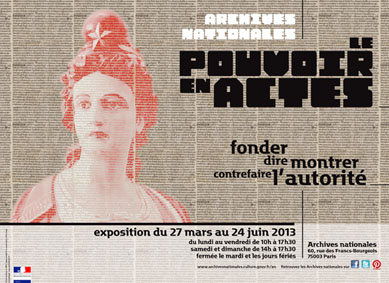 A l’origine de ce projet d’exposition, dont la réalisation aura mobilisé le concours du personnel des Archives nationales autant que de chercheurs extérieurs à l’institution, réside la conscience d’une équation à plusieurs termes, unissant autorité, acte, authentique et archives. Du maintien de cette équation dépend, précisément, la pérennité de ses termes. Il incombe donc au pouvoir d’en assurer la viabilité : très directement, en amont, lorsque lui revient l’acte de fonder (y compris de fonder les actes consignant l’expression de cette fondation), puis, au prix de médiations dont il est censé conserver le contrôle, tout au long d’une chaîne de délégations qui assure la transmission de ces actes et leur mise en œuvre.