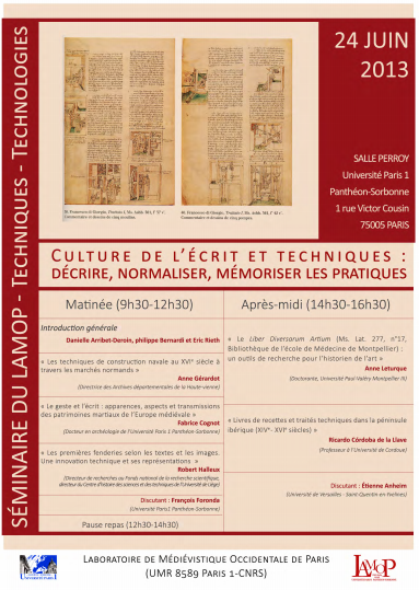 Journée d’étude organisée dans le cadre du « Séminaire du LaMOP : Techniques – Technologies », par Danielle Arribet-Deroin, Philippe Bernardi et Éric Rieth