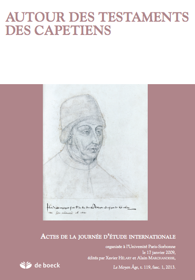 Xavier Hélary et Alain Marchandisse (éd.), Autour des testaments des Capétiens. Actes de la journée d’étude internationale organisée à l’Université Paris-Sorbonne le 17 janvier 2009, dans Le Moyen Âge, t. 119, fasc. 1, 2013.