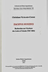 Christiane Veyrard-Cosme, Tacitus nuntius. Recherches sur l’écriture des « Lettres » d’Alcuin (730-804), Turnhout, Brepols, 2013 (Collection des Études Augustiniennes : Série Moyen Âge et Temps modernes, 50). Approx. 320 p., 1 colour ill., 165 x 250 mm. ISBN: 978-2-85121-265-8. Prix : 42,65 euros.