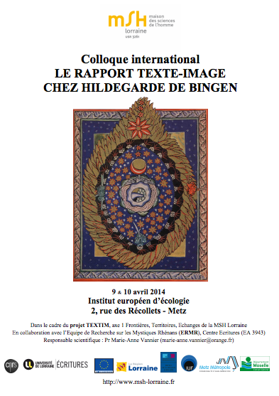 9h30 : Marie-Anne Vannier (Université de Lorraine, ERMR, MSH Lorraine, Membre de l’IUF) – Rapport texte-image dans le Scivias et le Livre des oeuvres divines d’Hildegarde de Bingen