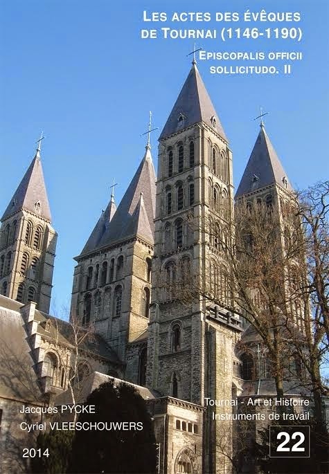 Jacques Pycke et Cyriel Vleeschouwers, Les actes des évêques de Tournai (1146-1190). Episcopalis officii sollicitudo II, vol. 2, Louvain-la-Neuve, i6doc, 2014 (Tournai – Art et Histoire, Instruments de travail, 22). 262 p., 21 x 29 cm,658 gr. 978-287558700-4. Prix : 29 euros (19 euros au format PDF).