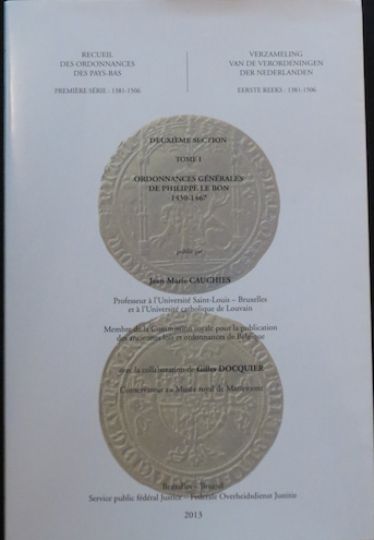 Cauchies Jean-Marie (éd.) et Docquier Gilles (coll.), Ordonnances générales de Philippe le Bon, 1430-1467, Bruxelles, Commission royale des anciennes lois et ordonnances de Belgique (coll. « Recueil des ordonnances des Pays-Bas », Première série : 1381-1506, Deuxième section, tome I), 2013, 167 p.