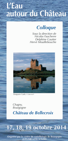 Après le colloque sur « l’eau dans le château » d’octobre 2013, le Centre de Castellologie de Bourgogne accueillera au château de Bellecroix le second volet de ces rencontres, intitulé « l’eau autour du château ». Ce colloque, qui concerne l’histoire et l’archéologie des habitats aristocratiques médiévaux et modernes, ne s’arrêtera pas aux fossés en eau, mais explorera tout l’environnement aquatique et hydraulique du château : fleuves et transports, moulins et forges, pêcheries, lacs et mers, inondations défensives et offensives, bassins, ports et canaux… Les chercheurs seront particulièrement attentifs au rôle moteur des étangs et des moulins dans l’installation des seigneuries châtelaines.
