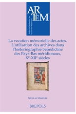 Nicolas Mazeure, La vocation mémorielle des actes. L’utilisation des archives dans l’historiographie bénédictine dans les Pays-Bas méridionaux, Xe-XIIe siècles, Turnhout, Brepols, 2014 (Atelier de recherche sur les textes médiévaux, 20). 517 p., 156 x 234 mm. ISBN: 978-2-503-54915-6. Prix : 80 euros.