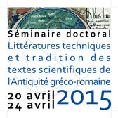 Du 20 au 24 avril 2015, l’Université de Reims et la Casa de Velázquez s’associeront pour la troisième édition du séminaire doctoral Littératures techniques et tradition des textes scientifiques de l’Antiquité gréco-romaine, organisé depuis 2012 en partenariat avec l’Institut de recherche et d’histoire des textes (IRHT, CNRS).