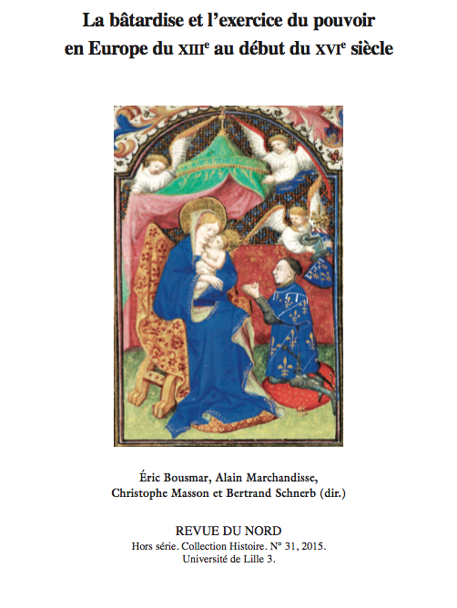 Éric Bousmar, Alain Marchandisse, Christophe Masson et Bertrand Schnerb (dir.), La bâtardise et l’exercice du pouvoir en Europe du XIIIe au début du XVIe siècle, dans Revue du Nord. Hors série, Collection histoire, n° 31, à paraître à la mi-mars 2015. 1 volume format 16 x 24, 516 p. Au prix de 35 € + 6 € de frais de port, soit 41 €.
