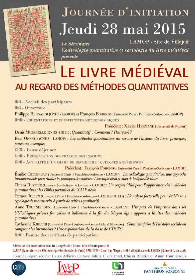 Le livre médiéval au regard des méthodes quantitatives. Journée d’initiation