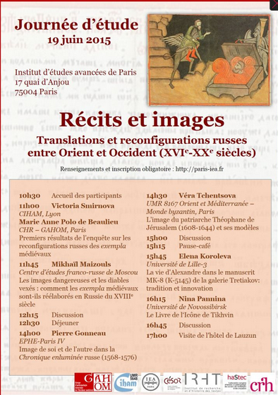 11h – 11h45 : Victoria Smirnova (CIHAM, Lyon), Marie Anne Polo de Beaulieu (GAHOM, Paris) – Premiers résultats de l’enquête sur les reconfigurations russes des exempla médiévaux.