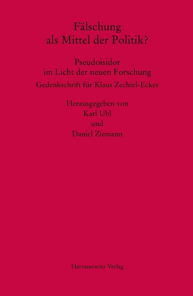 Karl Ubl und Daniel Ziemann, Fälschung als Mittel der Politik? Pseudoisidor im Licht der neuen Forschung. Gedenkschrift für Klaus Zechiel-Eckes, 2015, Monumenta Germaniae Historica (Studien und Texte, 57). VIII und 268 S. mit 6 Abb., 2 Diagrammen, 6 Tab. 8°. ISBN 978-3-447-10335-0. geb. EUR 48, —.