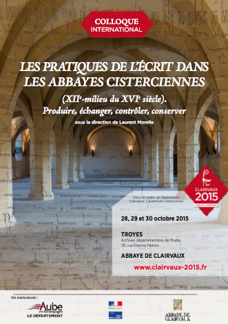 Par ailleurs, les spécialistes du monde cistercien n’ont pas été insensibles au dynamisme du thème de « l’écrit » : en témoignent les nombreuses monographies, achevées ou en cours, de chartriers cisterciens (Cîteaux, Clairvaux, Fontfroide, Morimond, Pontigny, Reigny, Vaucelles, etc. pour se borner à quelques exemples français), ou bien l’attention portée aux pancartes monastiques, documents longtemps réputés spécialité cistercienne, ou encore les recherches fécondes faisant dialoguer actes de la pratique et manuscrits de bibliothèques, à l’image de la rencontre organisée en novembre 2012 par la Médiathèque du Grand Troyes (Les cisterciens et la transmission des textes, XIIe-XVIIIe siècles).