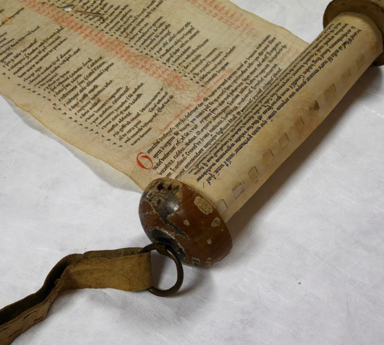 Au regard de leur contenu, certains cartulaires copiés en rouleaux ont été identifiés comme des recueils destinés à soutenir une revendication, prouver son bon droit dans le cadre de la résolution d’un conflit, qu’il concerne la possession d’un bien, la jouissance d’un privilège, l’exercice d’un pouvoir… Cette session se propose d’explorer les multiples raisons pour lesquelles on a choisi la forme en rouleau pour recevoir des dossiers de documents relatifs à une affaire (voire même à une combinaison de plusieurs affaires), un conflit ou une situation nécessitant un effort de défense. Ces rouleaux-dossiers auraient pu répondre à plusieurs objectifs : soit constituer un dossier à usage interne, pratique à consulter, soit rassembler des documents dans la perspective d’une possible ostension (des documents que l’on veut montrer ou que l’on souhaite pouvoir éventuellement produire en justice). Répondant à ces motivations, le rouleau présentait-il assez d’avantages en termes de fabrication et d’ergonomie ? On prendra en compte la matérialité du document : taille de l’objet, support, soin apporté aux assemblages, coût supposé, possibilité de dérouler complètement le rouleau et de montrer le contenu (mise en page, élément favorisant le repérage des actes).