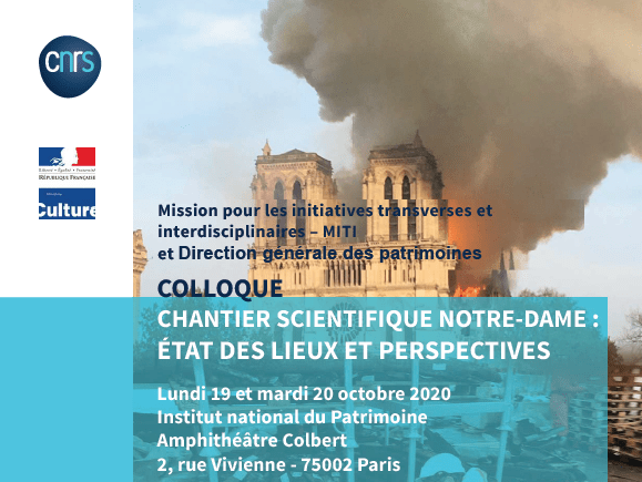 Le colloque « Chantier scientifique Notre-Dame – état des lieux et perspectives » se tiendra les lundi 19 octobre et mardi 20 octobre à l’Institut National du Patrimoine, amphithéâtre Colbert, 2, rue Vivienne à Paris (75002).