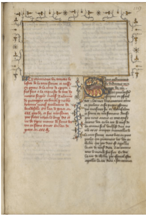 Pour analyser les processus de structuration des récits médiévaux et leur évolution du XIIIe siècle au XVIe siècle, les pistes d’exploitation proposées ci-dessous s’articuleront autour de l’étude de la macrostructure et de la microstructure des textes : la composition d’un recueil, la dispositio du texte, les épisodes, la mise en page, les rubriques, les colonnes, les paragraphes, les miniatures, les bois, les sauts, les blancs, les différents marqueurs du texte, la ponctuation, etc.