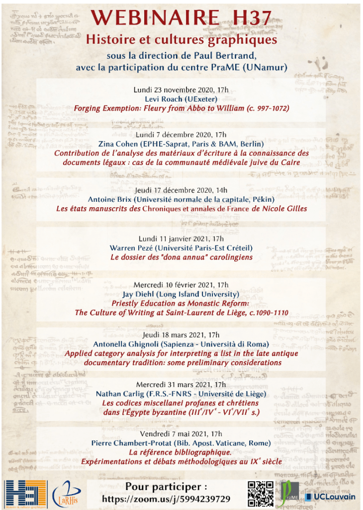 Avec la collaboration du centre PraME – Pratiques médiévales de l’écrit (UNamur)
