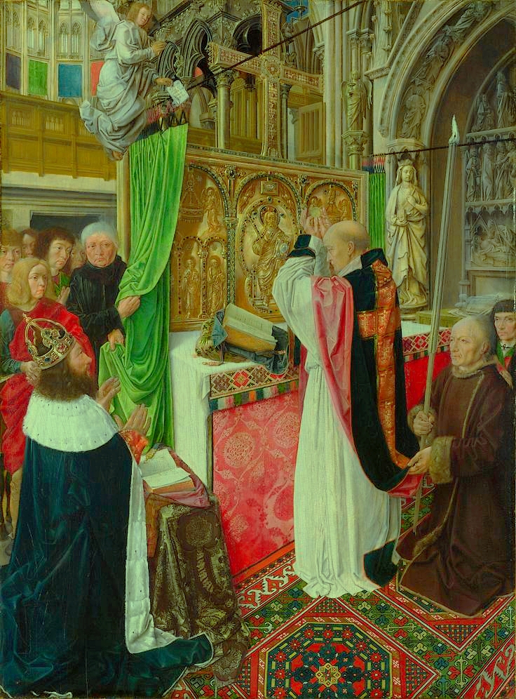 Be they part of the composition of an image or gathered around the altar, textiles, as pliable and movable material, played a crucial part in the revelation of the invisible. Since the middle of the thirteenth century, the Real presence of Christ in the Eucharist became physically exalted and devotional images flourished in churches and in domestic interiors. It led to a genuine visual appetence, an intense desire to see the sacred. The image itself, powerful instrument of mediation between the visible and the invisible, is often compared to a veil, as it is able to suggest the presence or the absence of what is represented.
