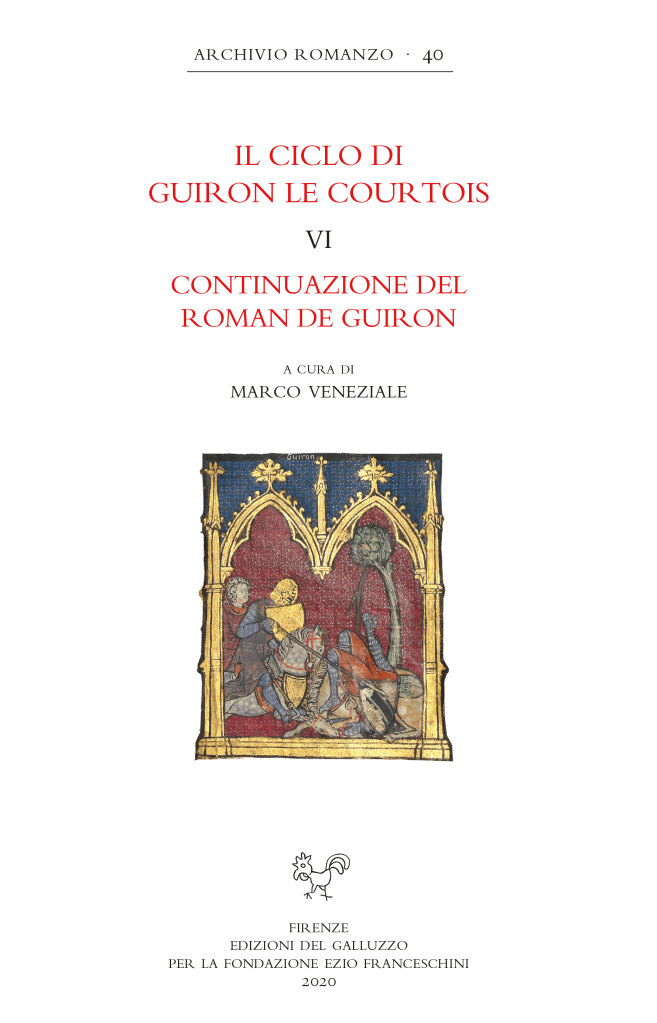 Il ciclo di Guiron le Courtois. Romanzi in prosa del secolo XIII. Edizione critica diretta da Lino Leonardi e Richard Trachsler. VI. Continuazione del Roman de Guiron. A cura di Marco Veneziale. Ril. pp. XVI-530, € 80,00 (Archivio Romanzo, 40). ISBN : 978-88-8450-982-6.