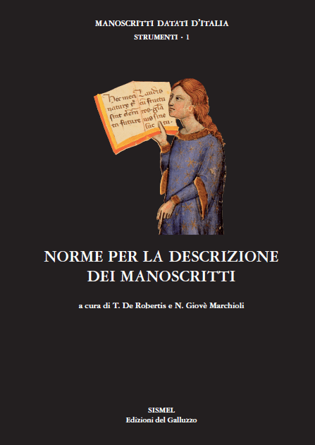Il volume contiene norme di catalogazione dei manoscritti medievali, accompagnate da indicazioni per la costruzione della bibliografia e degli indici, oltre che da una serie di regole di trascrizione. Esse non sono rivolte solo ai collaboratori del progetto dei “Manoscritti datati d’Italia”, ma possono essere di indubbia utilità anche per tutti coloro che, con gli intenti più diversi, vogliono descrivere un codice secondo un protocollo aggiornato e scientificamente fondato.