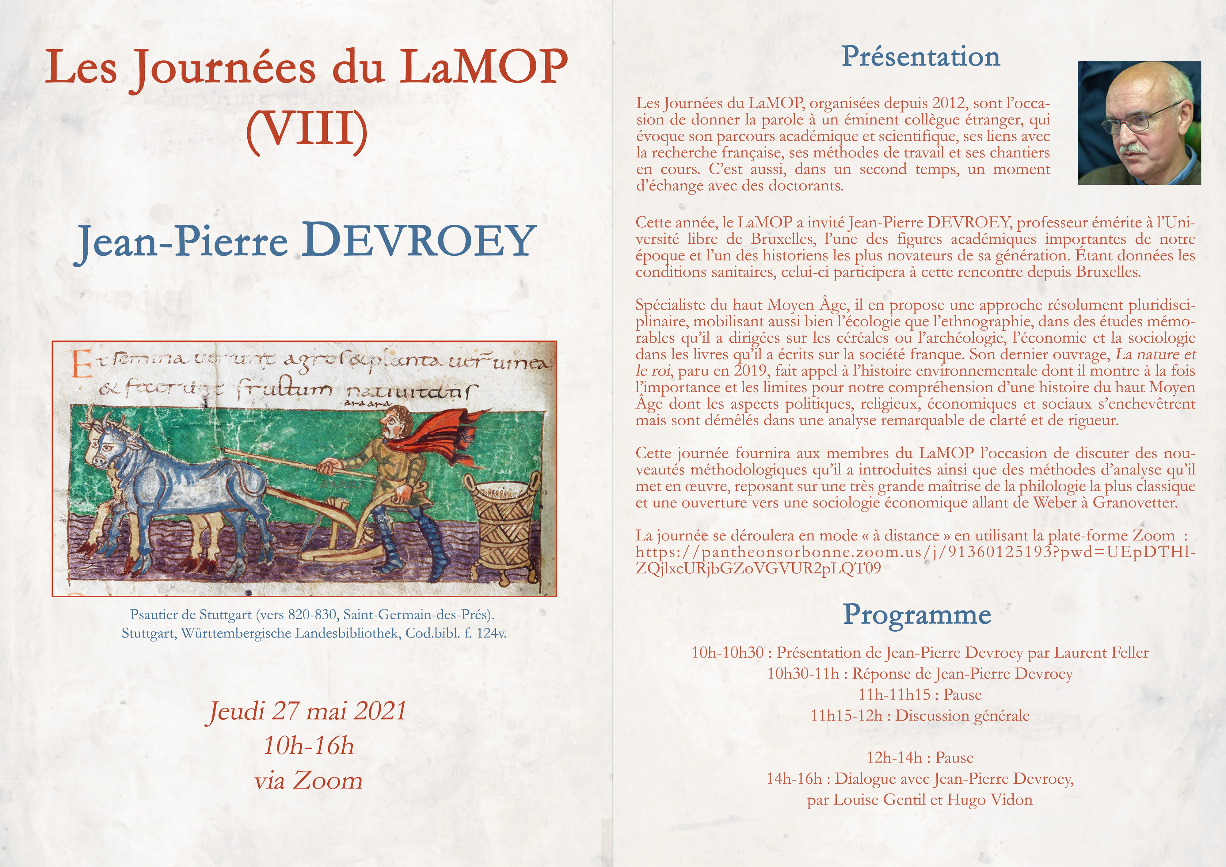 Cette année, le LaMOP a invité Jean-Pierre DEVROEY, professeur émérite à l’Université libre de Bruxelles, l’une des figures académiques importantes de notre époque et l’un des historiens les plus novateurs de sa génération. Étant données les conditions sanitaires, celui-ci participera à cette rencontre depuis Bruxelles.