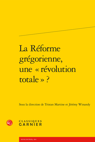 Tristan Martine et Jérémy Winandy, La Réforme grégorienne, une « révolution totale » ?, Paris, Classiques Garnier, 2021 (Rencontres, n° 494 / Civilisation médiévale, n° 42). 231 p. ISBN : 978-2-406-11103-0. Prix : 28 euros.