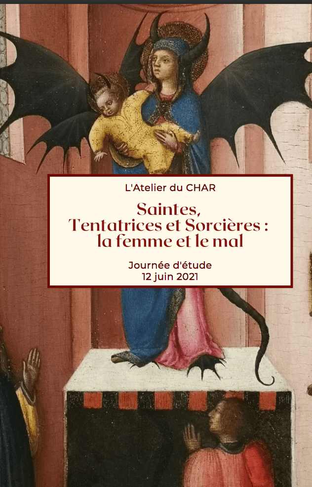 La journée d’étude Saintes, tentatrices et sorcières : la femme et le mal souhaite une réflexion sur le rôle et la représentation artistique de la femme confrontée à des adversaires d’ordre politique, social, moral et théologique. L’objectif principal est de comprendre comment la femme peut être séduite ou pourchassée par le mal, pour en devenir le héraut ou l’ennemie. La journée d’étude cherchera à privilégier l’interdisciplinarité pour s’ouvrir à des réflexions trans-historiques du Moyen Âge à la première modernité.