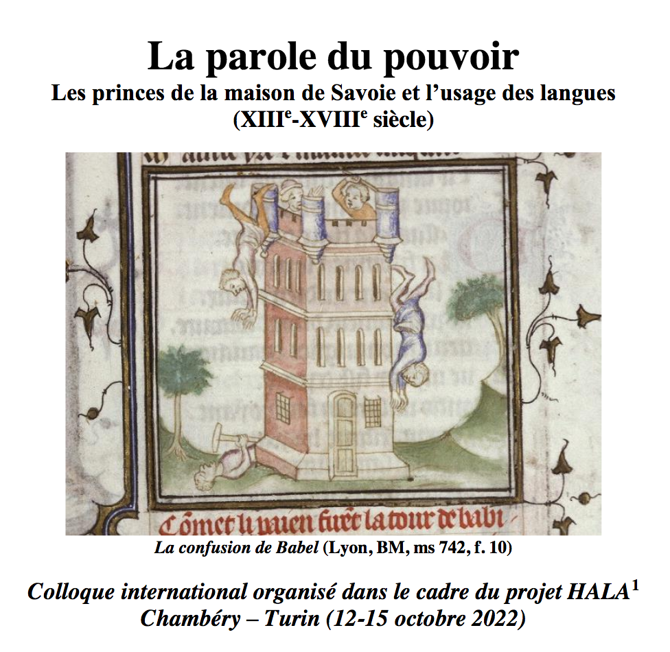 Le colloque « La parole du pouvoir » entend examiner ces thématiques de politique linguistique en les situant dans un cadre territorial précis et une perspective de longue durée. Bénéficiant d’une excellente tradition archivistique désormais bien explorée, les États de Savoie nous apparaissent comme particulièrement pertinents pour une telle étude de cas ; ils n’ont pour l’instant été que très peu étudiés dans cette perspective, si l’on excepte quelques articles. Situées de part et d’autre des Alpes occidentales, ces régions ont été soumises dès le XIe siècle à l’action unificatrice des comtes (puis ducs) de Savoie qui a débouché au XVe s. sur un État princier, élevé ensuite à la dignité royale au début du XVIIIe s. en tant que royaume de Piémont-Sardaigne.