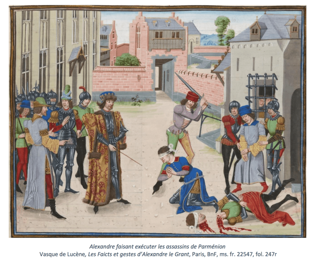 Dans L’Automne du Moyen Âge (1919), Johan Huizinga soulignait déjà le rôle qu’avait revêtu « le culte du héros » au sein de la noblesse des derniers siècles du Moyen Âge : « La vie chevaleresque est une imitation ; imitation des héros du cycle d’Arthur ou des héros antiques, peu importe1. » Les vertus du prince étant considérées comme le fondement même du bon gouvernement, la littérature écrite à la cour de Bourgogne pourra être envisagée sous l’angle de sa dimension exemplaire et de sa portée didactique. On se penchera dans cette perspective sur les œuvres bourguignonnes consacrées aux grandes figures du passé, dont Alexandre, Girart de Roussillon, ou encore Charlemagne2, qui offraient aux ducs et aux seigneurs de leur entourage des modèles de comportements chevaleresques et princiers.
