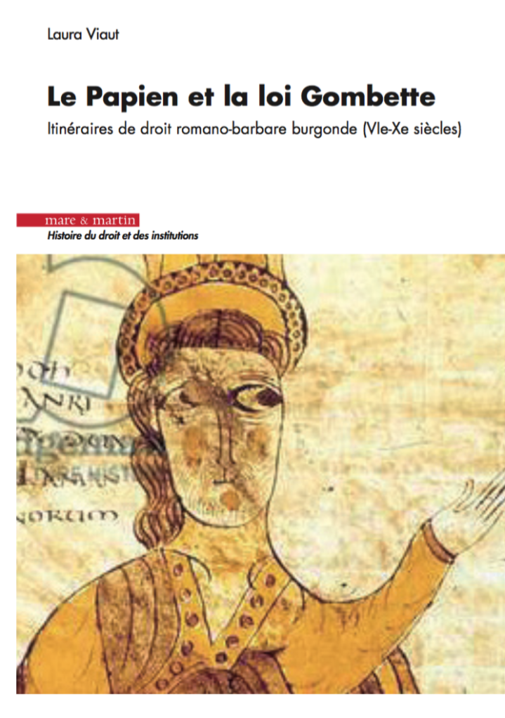 Laura Viaut, Le Papien et la loi Gombette. Itinéraires de droit romano-barbare burgonde (VIe-IXe siècles), Paris, Mare et Mqartin, 2021 (Histoire du droit et des institutions). 276 p., ISBN : 978-2-84934-614-3. Prix 32 euros.