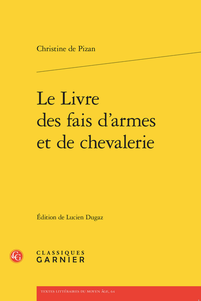 Christine de Pizan, Le Livre des fais d’armes et de chevalerie, éd. Lucien Dugaz, PAris, Classiques Garnier, 2021 (Textes littéraires du Moyen Âge, n° 64). 631 p. ISBN : 978-2-406-11959-3.