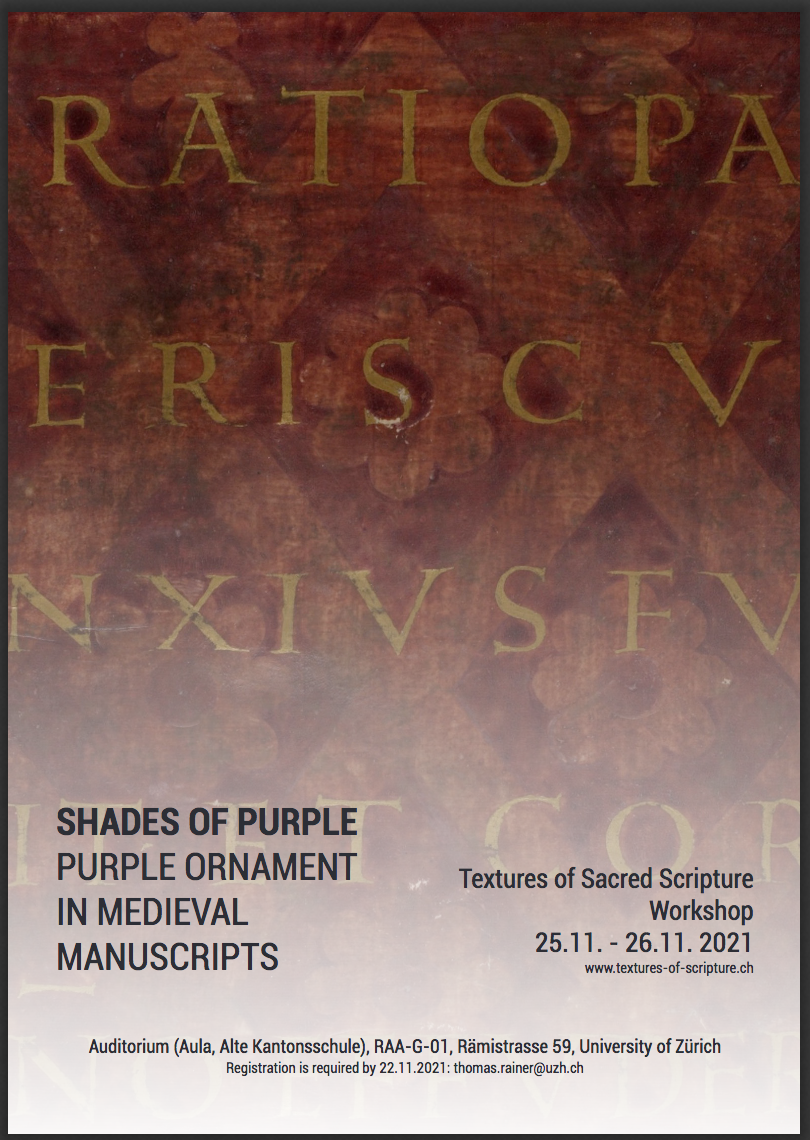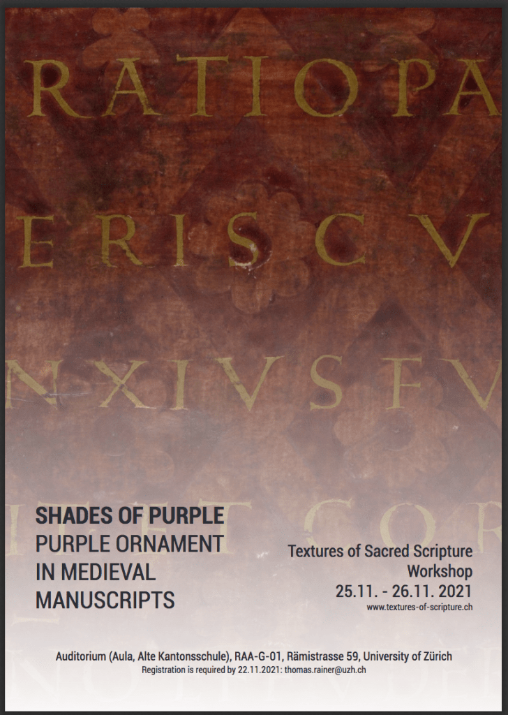 This two-day workshop, organized by the research group Textures of Sacred Scripture – https://textures-of-scripture.ch at the University of Zurich will explore a range of questions about the materials and semantics of medieval purple manuscripts.