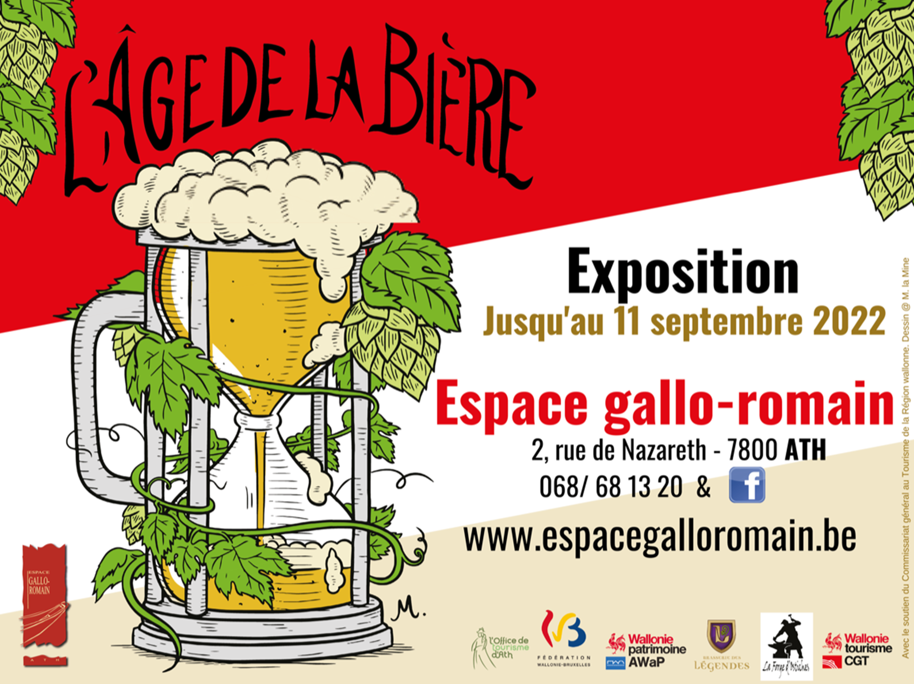 L’exposition est le fruit d’un travail collaboratif. Cinq musées se sont réunis autour de la table : La Maison du Patrimoine Médiéval Mosan, Malagne – Archéoparc de Rochefort, l’Espace gallo-romain d’Ath, l’Abbaye de Villers et le Musée de la Bière à Stenay (France).