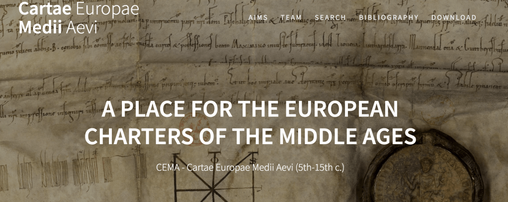 The aim of Cartae Europae Medii Aevi is to offer historians multiple resources for the study of medieval diplomatic documents on a European scale, including the corpus of the same name. The website already contains several sections: