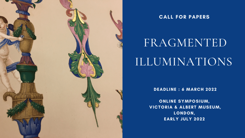 The V&A will be organising an online symposium in early July as a follow-up to the display Fragmented Illuminations: Medieval and Renaissance Manuscript Cuttings at the Victoria and Albert Museum (extended until 5 June 2022). It will be held over one afternoon to allow for as large an audience as possible to join and participate, from different time zones.